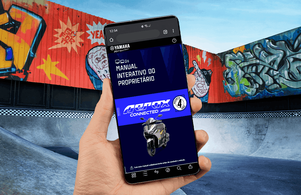 Com a pioneira jornada digital, a Yamaha inova mais uma vez ao lançar o manual interativo da AEROX. Acesse e use com facilidade e simplicidade.